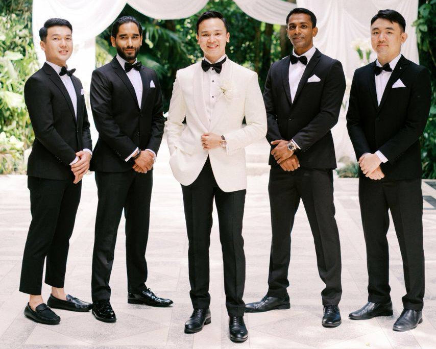 This wedding suit is the embodiment of refined sophistication. Crafted from premium wool with a subtle sheen, it features a tailored silhouette designed to flatter every frame. Whether you’re walking down the aisle or dancing under the stars, this is a suit made for memories.